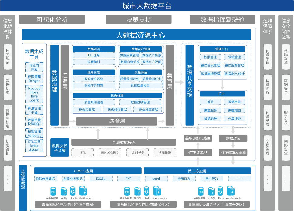 大数据整合能力是指对分散建设的应用信息系统的数据进行整合统筹,解决数据孤岛、数据资源缺乏管理、数据安全存隐患、数据质量无保障、数据建设效率低和数据运维成本高等问题,服务园区经济运行管理,实现园区税收、产值、固定资产投资和企业项目等运行情况监测与整合分析。