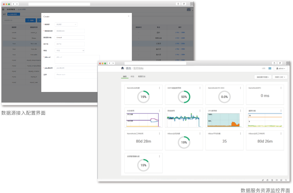 依托Hadoop生态体系,提供大规模数据接入能力,实现海量多源异构数据高效存取,提供数据服务资源监控、组件管理及任务管控,降低数据管理的复杂性,实现完善的数据备份,保证数据安全。