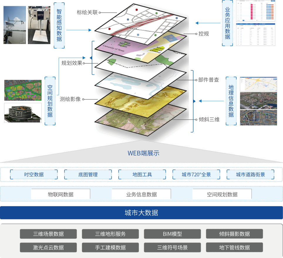 时空底图管理是以超图iServer系统为支撑,支持三维地形、卫星遥感影像、城市矢量规划图、城市实景模型、建筑室内室外BIM模型、地下空间管廊、地上设施设备信息的管理和发布。