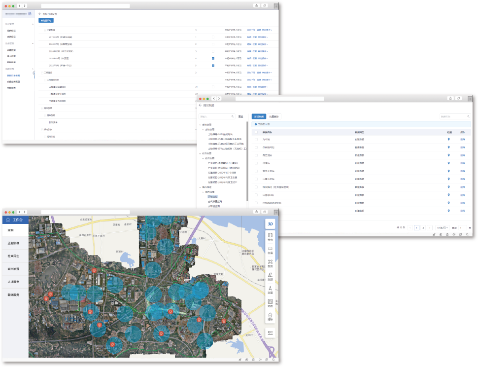 时空数据管理界面、时空数据图层配置界面、时空数据展界面