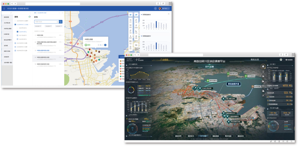 采用一张图的建设模式,利用航空摄影技术,高效获取二维地图、三维倾斜模型等时空基础数据,采用基于天地图的二维地图构建系统底图,在此基础上接入控规等各类规划图层,标绘关联智能感知数据及业务应用数据。支持在线标注、量算、基本三维分析、截图、动态添加矢量数据等功能,满足基本的功能使用。
