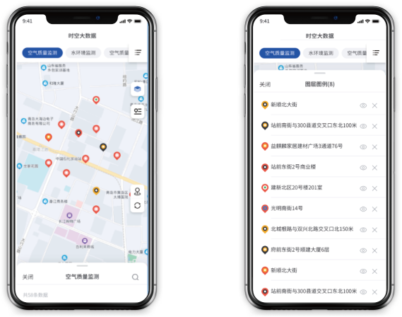 同时提供零代码配置图层功能,包括图层数据、图层叠加顺序、前端展示样式、数据查询策略、图层查看权限等。