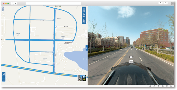 道路街景展示是基于全景相机获取原始数据,通过全景图拼接和融合技术重建高精度城市道路三维场景,实现360°全景成像和浏览。